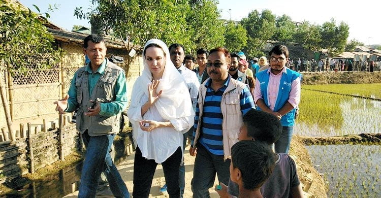 أخذت أنجلينا جولي الممثلة الأمريكية ومبعوثة المفوضية السامية للأمم المتحدة لشؤون اللاجئين، زيارة لمخيمات اللاجئين الروهنغيا في بنغلادش.