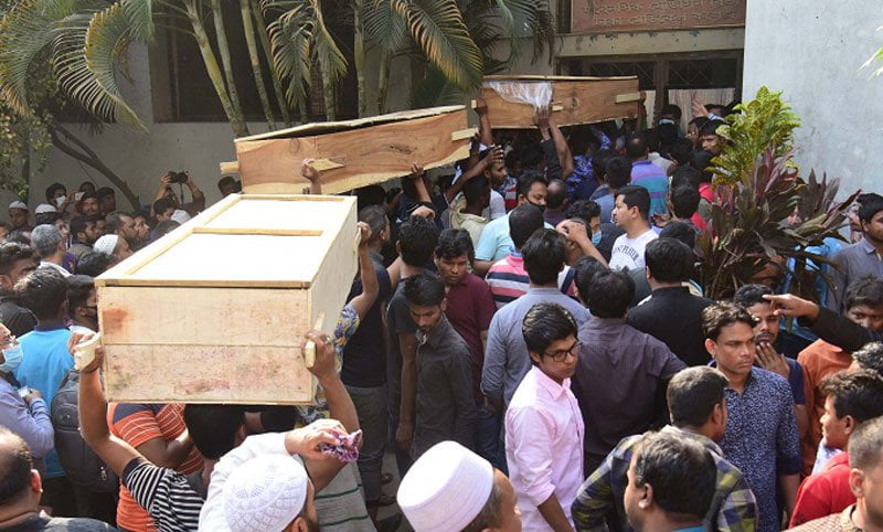 قال مسؤولون للدفاع المدني في دكا : إن الحريق المروع الذي تعرض له تشوكبازار (دكا القديمة)، قد أسفر عن وفاة ما لا يقل عن 77 شخصا، تم التعرف على جثة 45 شخصا، وجار التعرف على جثة 22شخصا، حسب وسائل إعلام وطنية.