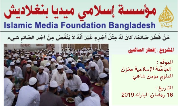 واصلت مؤسسة إسلامي ميديا بنغلاديش الخيرية تنفيذ حملة إفطار الصائمين الذي هو أحد مشروعاتها الرمضانية، حيث يستهدف المشروع توزيع الإفطار بين الصائمين والمحتاجين، انطلاقا من حديث النبي صلى الله عليه وسلم: (من فطر صائما, كان له مثل أجره غير أنه لا ينقص من أجر الصائم شيء).