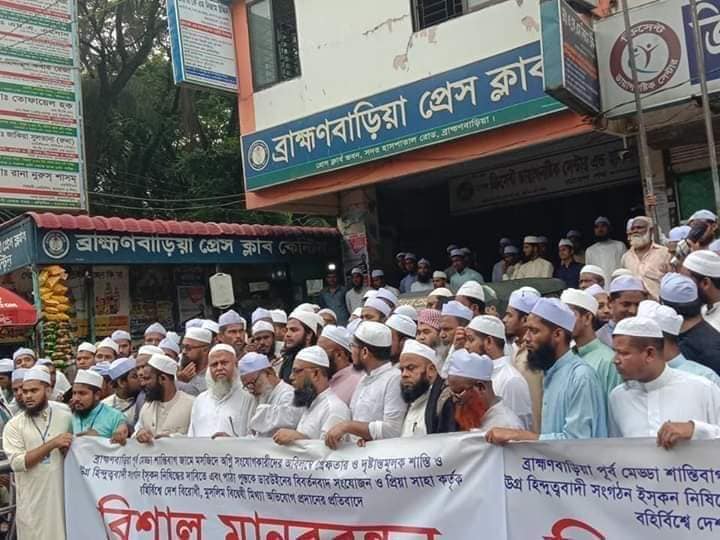أقامت الجالية الإسلامية في برهمن باريا مظاهرات احتجاجية شاركها آلاف المسلمين احتجاجا على إضرام النار في مسجد في مقاطعة برهمن باريا، وطالبوا الحكومة بإلقاء القبض على المتورطين بالحادث والإنزال بهم أشد عقوبة ممكنة، وذلك ظهر اليوم برئاسة العلماء المحليين.