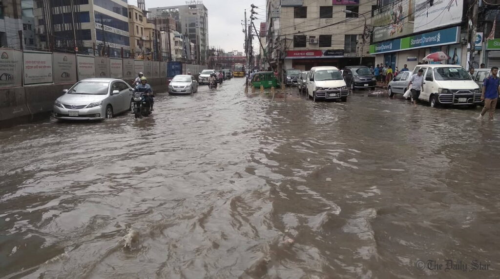 وبسبب هطول الأمطار في دكا غرق العديد من الطرق بما في ذلك دانموندي، وقاضي نذر الإسلام إيبي نيو، وأجزاء مختلفة من ميربور، غرين روت تحت الماء مما تسبب في معاناة هائلة للناس.