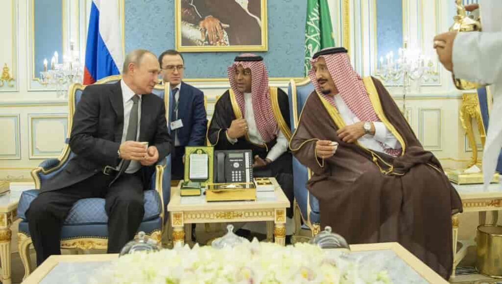 ويجري بوتين محادثات مع الملك السعودي، بالإضافة إلى محادثات مع ولي العهد في وقت لاحق الاثنين، وستُجرى محادثات بين الوفدين الروسي والسعودي، ومن المتوقع أن يهيمن النفط على المحادثات.
