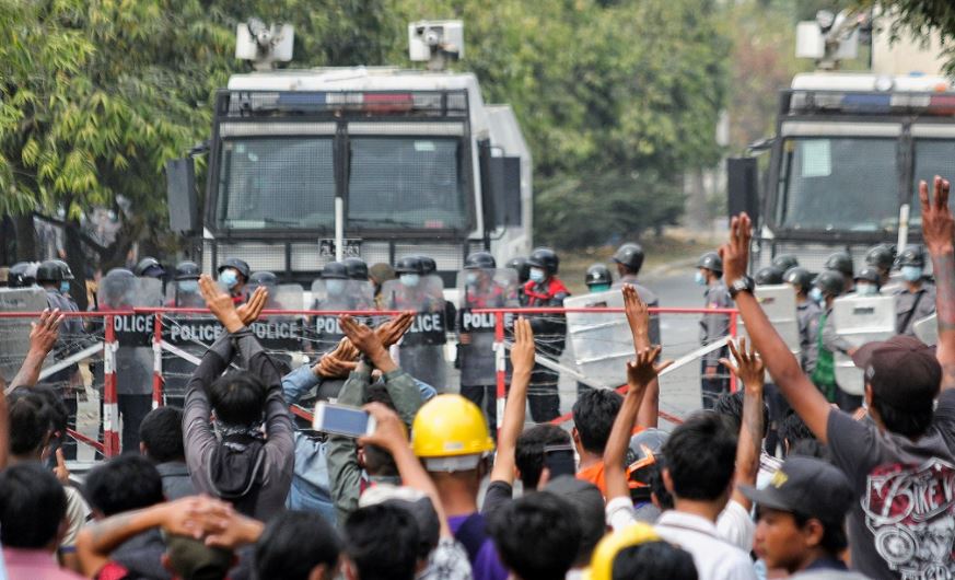 ومنذ اندلاع المظاهرات منذ أسبوعين في كافة أنحاء البلاد، تستخدم السلطات في بعض المدن الغاز المسيل للدموع وخراطيم المياه والرصاص المطاطي ضد المتظاهرين، وأطلقت في بعض المرات الرصاص الحي في العاصمة نايبيداو.