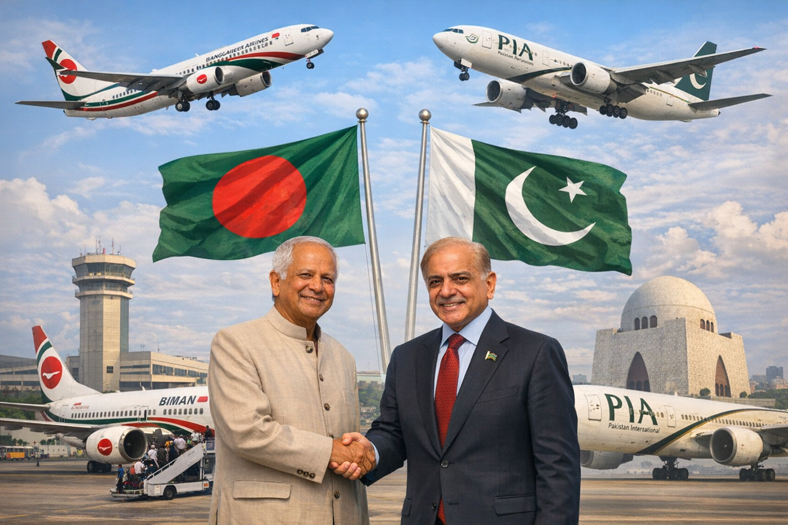 وأعلنت شركة خطوط بيمان بنغلاديش الجوية أن الرحلة الافتتاحية ستنطلق من مطار حضرت شاه جلال الدولي في دكا باتجاه كراتشي، لتكون بذلك أول وصلة جوية مباشرة بين البلدين منذ نحو أربعة عشر عاماً، في مؤشر عملي على انتقال العلاقة من مرحلة الفتور السياسي إلى مرحلة الانفتاح والتعاون المنظم.